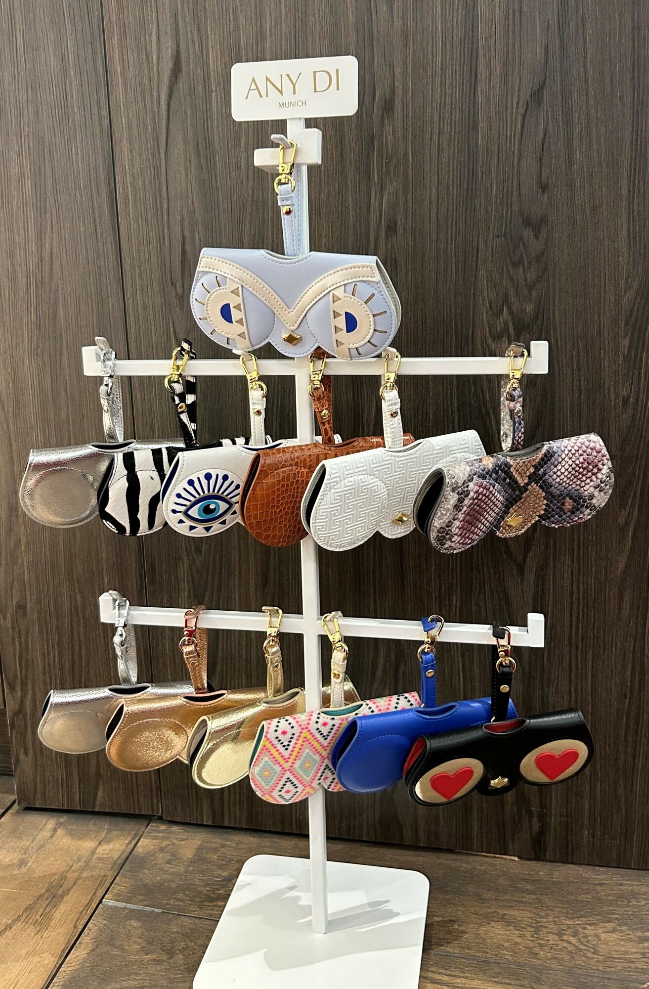 Nieuw in ons aanbod zijn de mooie suncovers van AnyDi. Hier past elke bril in en ze zijn super fashionable. Ze zijn uiterst kwalitatief door de microvezel aan de binnenkant en het leder aan de buitenkant. Je kan ze opbergen in je handtas maar zijn ook gemaakt als leuk accessoire voor aan de handtas te hangen. (Vanaf €85)