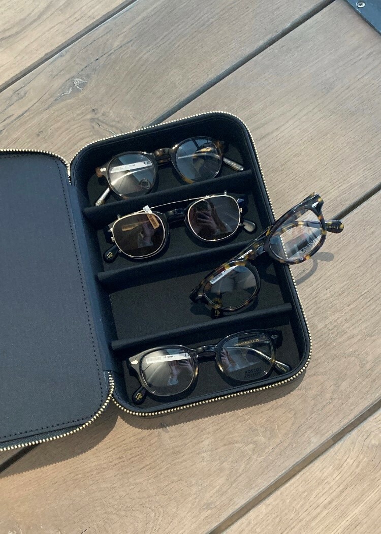 Liever een handige travel case? Niets is handiger dan al je favoriete brillen in 1 box op te bergen. Er zijn verschillende maten 2,4 of 5 brillen kunnen opgeborgen worden. Geen gesleur meer met verschillende etuis. (Vanaf €30)