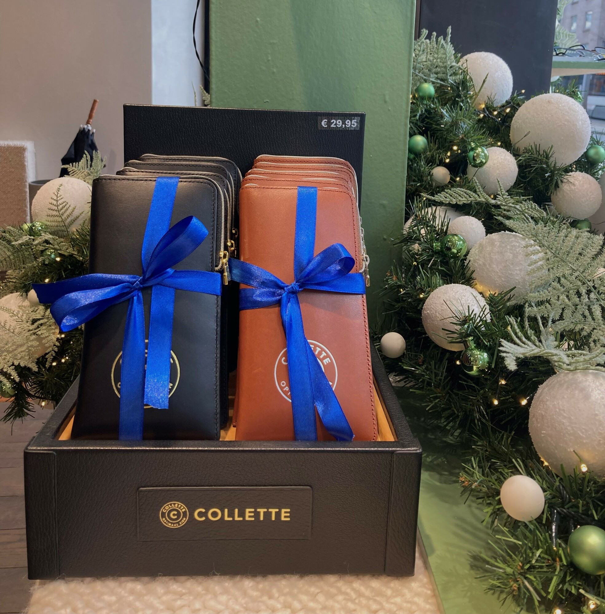 Vergeet zeker onze mooie brillen etuis van Optiek Collette niet. Deze zijn handig mee te nemen in een jas of kleine handtas. Ze zijn smal, niet al te groot en je bril is optimaal beschermd. Ze zijn afgewerkt in hoge kwaliteit leder en verkrijgbaar in twee kleuren. (€29.95)